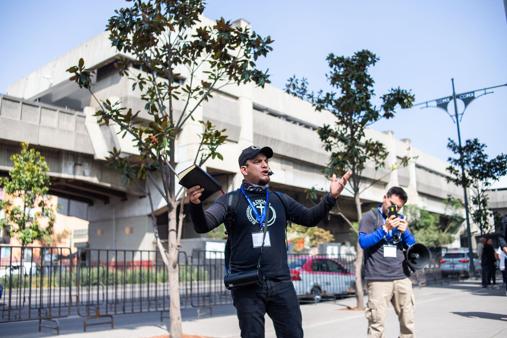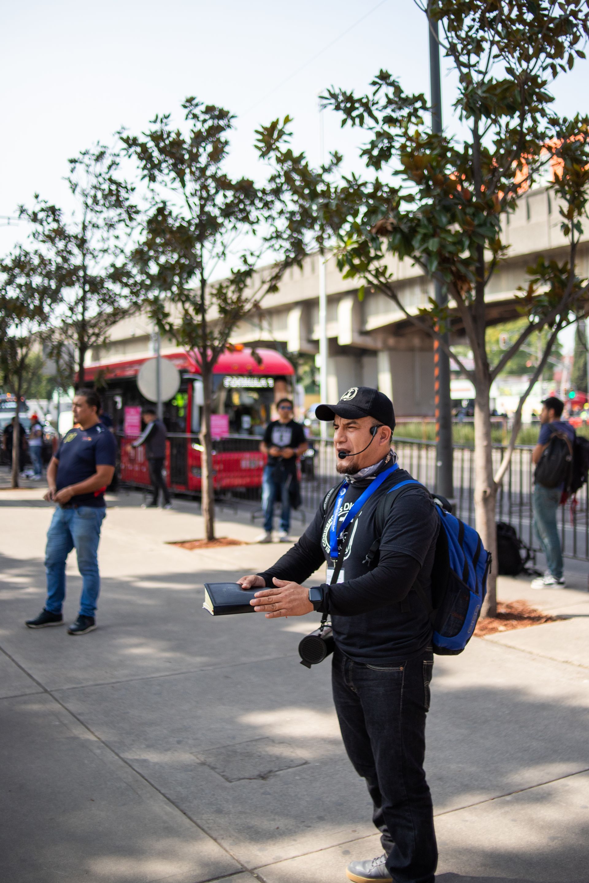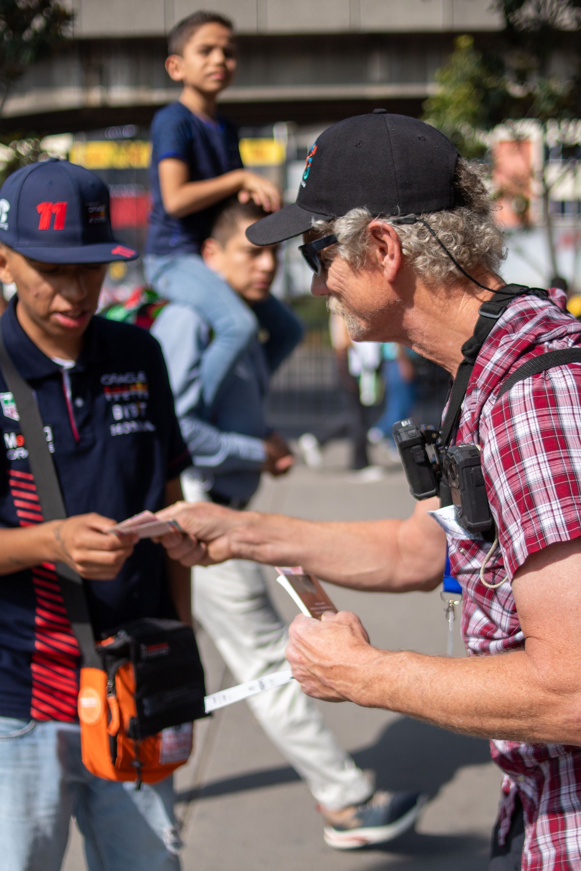 The photos below are from the evangelists during the Mexico City Grand Prix Outreach. The people were very receptive and eagerly listened to the gospel. The fans and locals received gospel tracts and held conversations with the evangelists. There were many who heard the Good News and even the police and event coordinators had no issues with the team preaching at the main gate entrance of the autodromo.